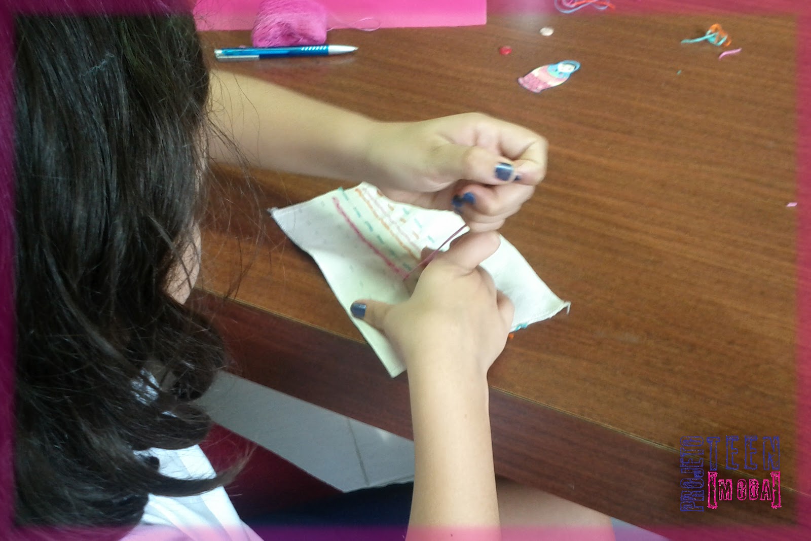 Na aula de pontos-à-mão as meninas aprenderam os pontos básicos e qual sua utilização.